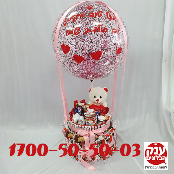 עוגת יום הולדת שלל שוקולדים המתנה המושלמת לכל גיל ולכל מי שאוהב שוקולדים המתנה המרגשת שמגיעה עם בלון שקוף ובעיצוב כדור פורח מושלם ומרגש להיות מיוחד להפתיע לרגש בענק הבלונים שלל מתנות לכל גיל .