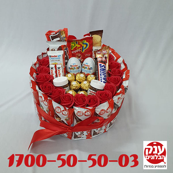 עוגת קינדר ענק הבלונים » עוגת קינדר » מתנה מקורית עוגת שוקולד עם פרחים