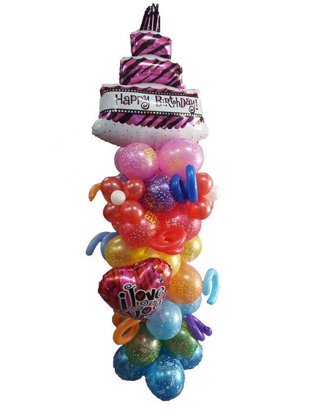 זרי בלונים ענק הבלונים » זרי בלונים » סטנד יום הולדת עוגה בשילוב בלון אהבה