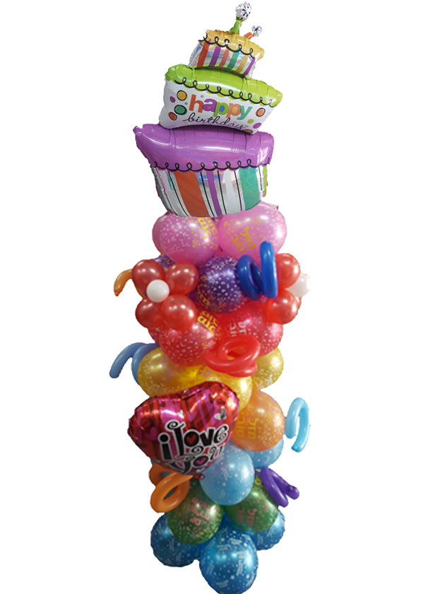זרי בלונים ענק הבלונים » זרי בלונים » סטנד יום הולדת עוגה צבעונית