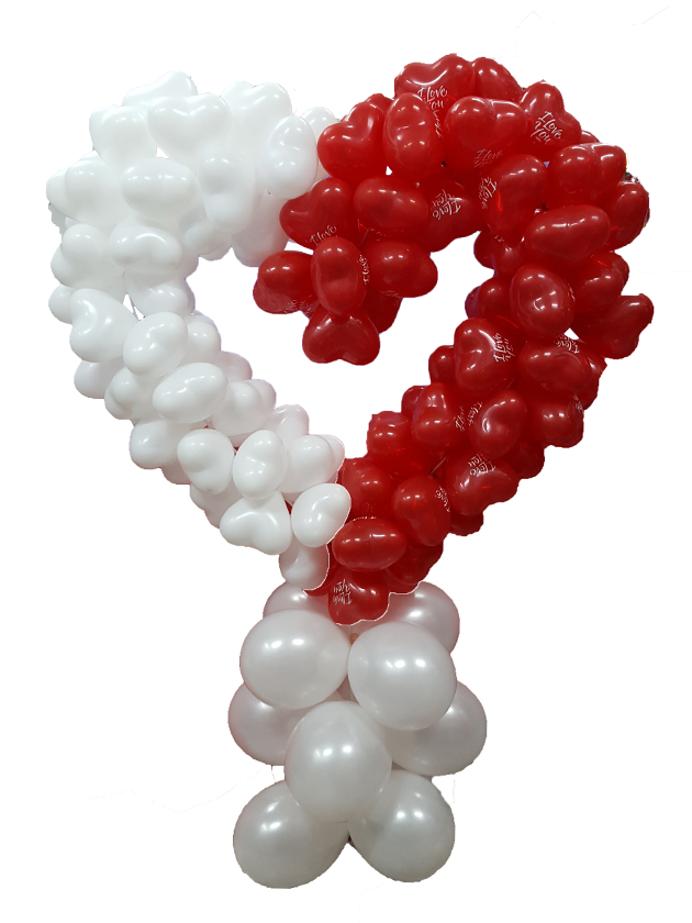 • גודל 1.4 מגיע עם בלוני לב חלקים בצבע לבן ואדום