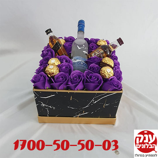 קופסא מדהימה ומרגשת למי שבאמת אוהבים מגיעה פרחים מלאכותיים בצבע סגול בשילוב וודקה ועוד לפי מלאי החנות בשילוב פררו רושה פשוט מושלם