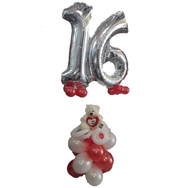 בלוני מספרים ענק הבלונים » בלוני מספרים » בלונים ליום הולדת 18 עם דובי