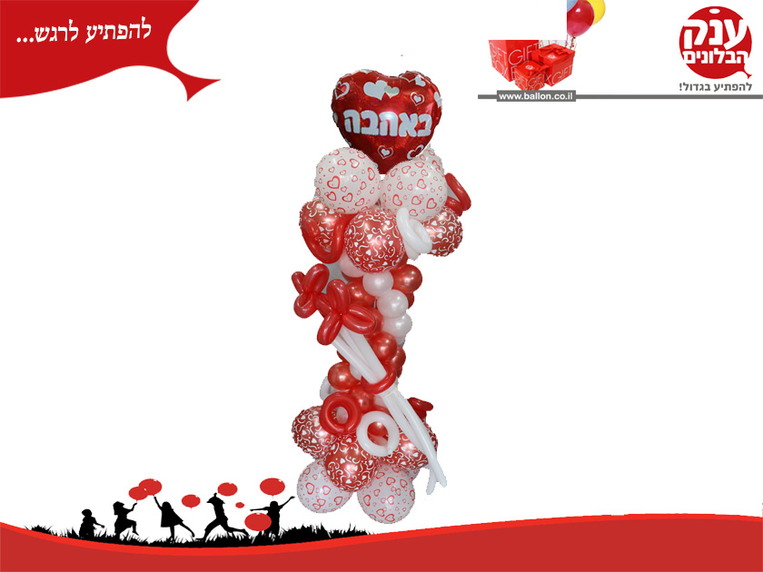 מגיע בצבעים אדום לבן בשילוב בלוני נשיקות בשילוב בלון לב "באהבה"גודל 26 אינץ