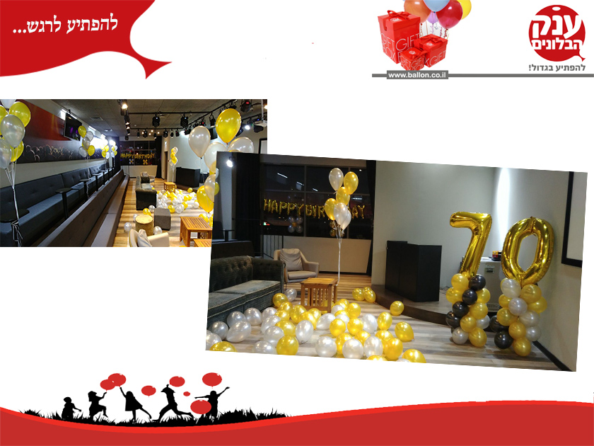 בלונים לאירועים גיל 70 במסעדה איזה גיל לחגוג יום הולדת לאבא לסבא או לסבתא היקרה שלנו יום הולדת 70 זה גיל כל כך מיוחד שאנחנו רוצים שהאווירה במסעדה תיהיה מושלמת,או בבית היום יש מגוון ענק של אפשריות שיגרמו לכם להנות להפתיע ולהגיע למקום מקושט ויפה,בלונים ליום הולדת 70 האווירה של היום הולדת גורמת להנה ומראה כמה אנחנו אוהבים.