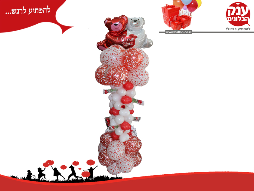 הסטנד מגיע בצבעים אדום לבן בלונים מודפסים לבבות בשילוב בלוני 5 אינץ