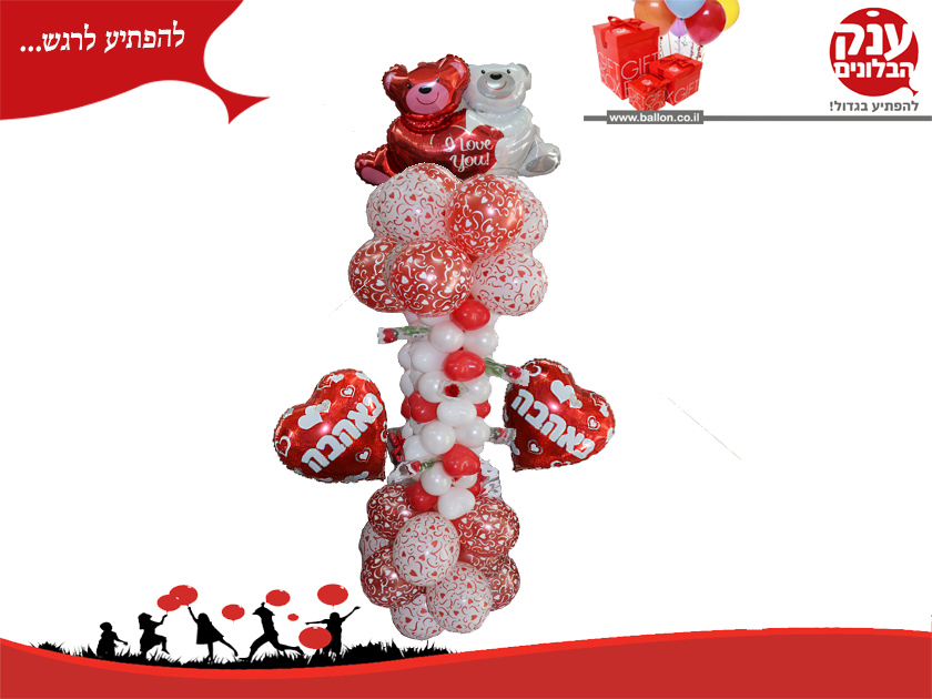 סטנד זוג דובים בשילוב ורדים וזוג "בלוני אהבה"