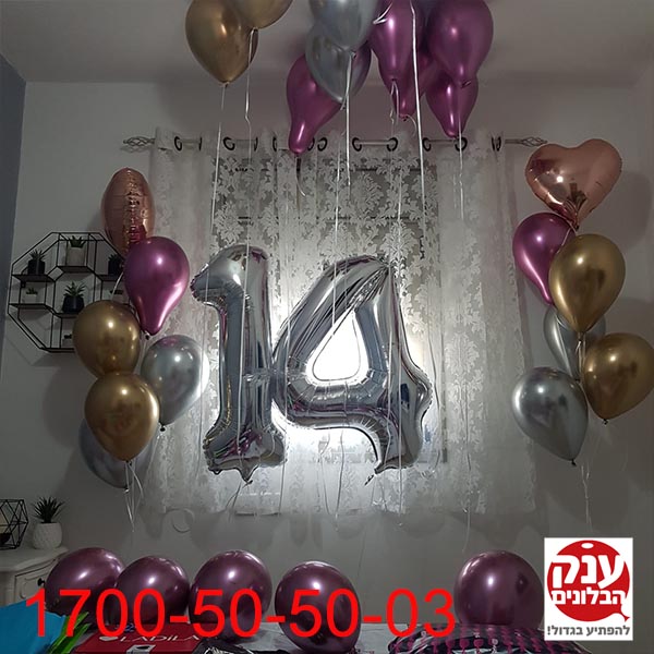 קישוט בלונים ליום הולדת 14 בלוני כרום