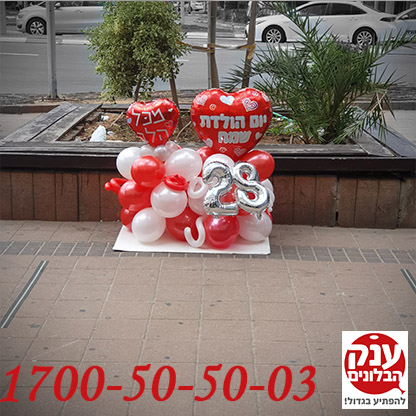 סידור בלונים ליום הולדת 28 מדהים ומרגש ,להפתיע בסידור בלונים מדהים ,בלון ילב יום הולדת שמח בשילוב בלון לב מכל הלב הזר מתאים לכ מי שאוהב ורוצה סידור בלונים בקטנה ובמחיר זול .
