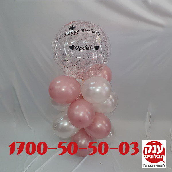 בלון שקוף עם נצנצים והקדשה אישית