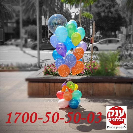 זר בלוני הליום צבעוני בשילוב בלון עם הדפסה