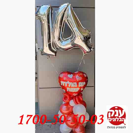 בא לכם לתת לילדה מתנה מושלמת ? המתנה בלונים ליום הולדת 14 בשילוב מעמד בלונים עם בלון לב יום הולדת שמח מדהים ומרגש , העיצוב בלונים מגיע עם בלוני מספרים מרחפים בהליום .