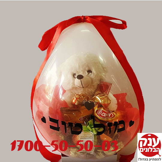 בלון הפתעה מיוחד מדהים ומרגש המתנה המושלמת הבלון מגיע עם דובי מתוק בשילוב שוקולד טעים בעיצוב חדשני ומיוחד שפשוט אין אחת שלא תתרגש מהמתנה או התרגש