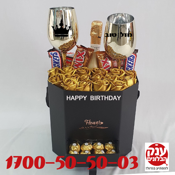 מתנה לבעל ליום הולדת בקבוק שמפניה עם שוקולדים