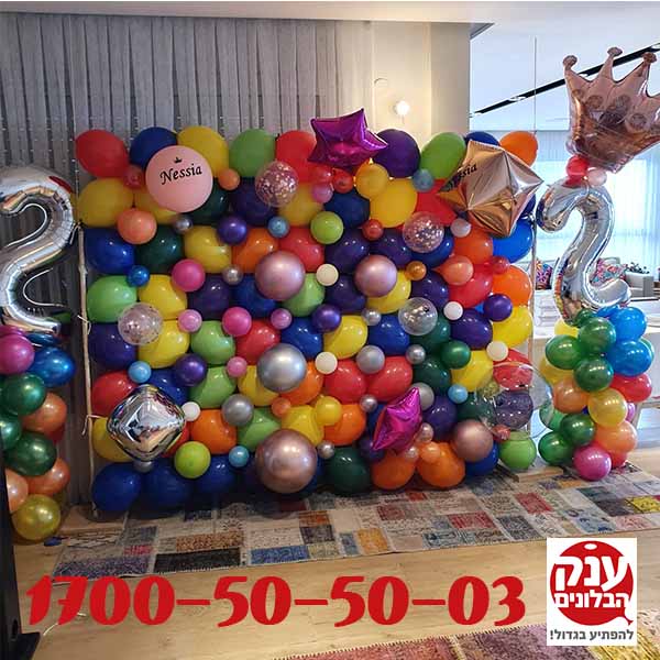 קיר צילום בלונים מושלם בשילוב ליום הולדת מרגש למי שחוגג שנתיים . בענק הבלונים חוגגים ומפתיעים בקיר צילום מדהים ומרגש , שלל בלונים צבעוני
