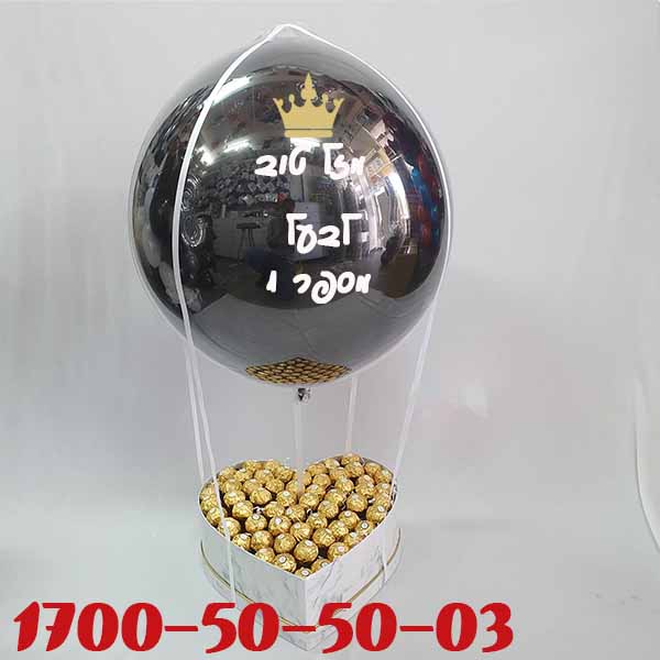 מחפשים מתנה מושלמת לגבר בן 60 מארז בצורת לב עם פררו רושה ,מארז שכל אחד ישמח לקבל , לרגש להיות מיוחד ,המתנה מגיעה עם כיתוב על הבלון .