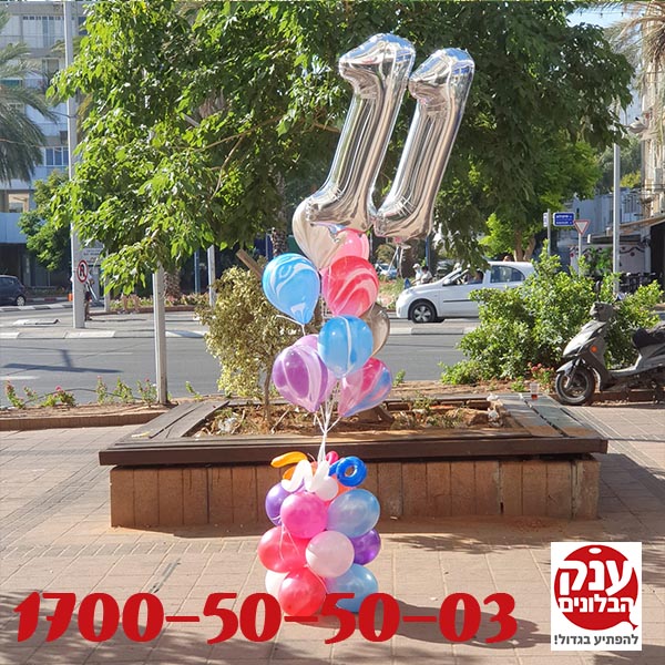 זר בלונים ליום הולדת 11 בלון מיוחד צבעים מושלמים ליום הולדת מושלם